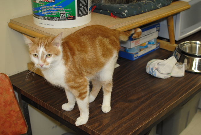 Phaedra describes Creamsicle as the least outgoing of his siblings when it comes to humans (he’s quite happy hanging out with his kitty friends), but recognizes he’s come a long way from being thought a hopeless feral who’d never learn to trust us. He may not come running for cuddles when she arrives in the mornings, but he’s overcome his shyness enough to allow some pets… particularly when there are treats to be had, which I hear he loves.