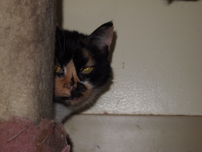 This blog post is in honor of the shyer cats at RAPS, the feral cats that never learn to trust. The cats who gratefully defer the spotlight to other more attention focused cats. These are the cats that sneak under tables, hide behind walls of blankets and scamper at the speed of light just to avoid a confrontation with us two legged creatures.