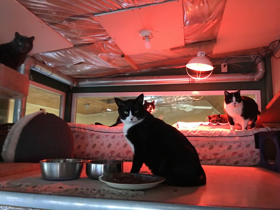 There are various areas around the Sanctuary where cats who prefer to live “outside” can find warmth and comfort.