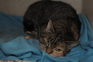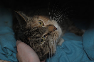 Not long after Schatze, our little escape artist and self-appointed parking lot dweller, was [re]captured and brought inside for a check-up, RAPS staff put her shy brother Miller in with her, giving the two a chance to get reacquainted. They were a little uncertain about each other at first, I hear, but were soon cuddling up to each other. Not only that, they both started warmly welcoming cuddles from human visitors to their the cage. Schatze has even been observed to start squeaking a bit like squeal-queen Josie if the stroking stops too soon.
